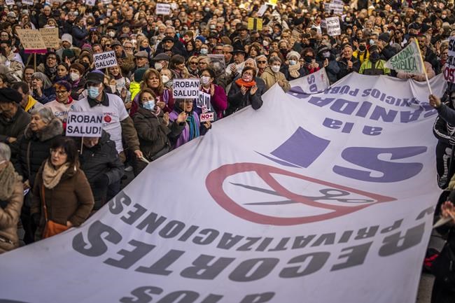 MADRID (AP) — Several thousand health workers returned to the streets of Spain’s capital Sunday to protest what they claim is the dismantling of Madrid’s public health care system by its conservative regional government.