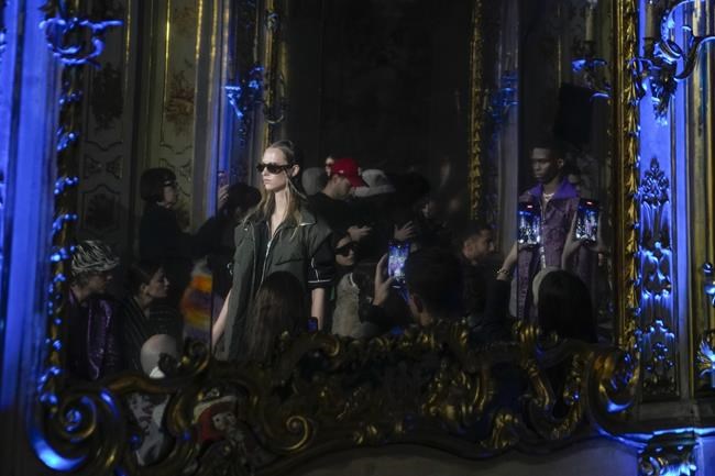 Models traversed the Tiepolo room in the 18th century Clerici Palace beneath images that included demons, walking to the beat of modems connecting mixed with classical music and hip hop. The mashup gives “us a whiff of the past and the future,’’ Kapoor said. “And we are birthing a new present.”