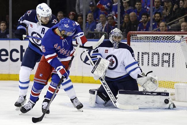 NEW YORK (AP) — Mark Scheifele scored twice and Connor Hellebuyck made 50 saves as the Winnipeg Jets beat the surging New York Rangers 4-1 on Monday night.