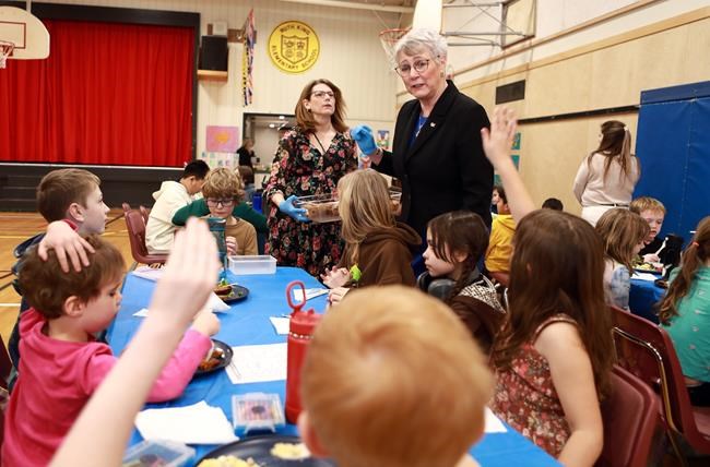 Conroy held a pre-budget news conference at a Victoria-area elementary school where she served a lunch of meat loaf, salad and desserts to students in grades 1 and 5, noting that government support helps fund similar meal programs at schools across B.C.