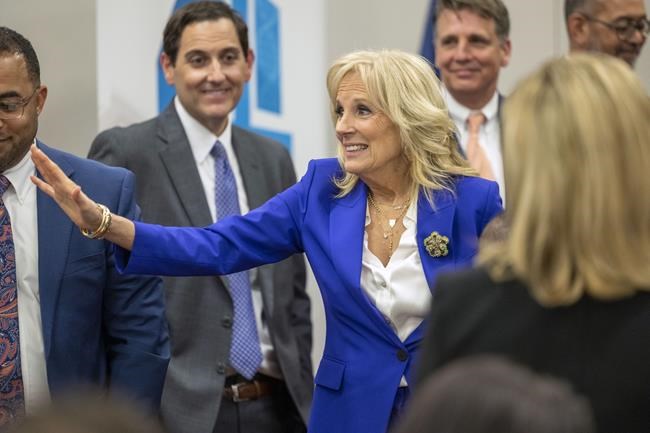 NEW ORLEANS (AP) — First lady Jill Biden visited a medical center in New Orleans on Friday to stress the importance of cancer research, a priority in the budget proposal President Joe Biden sent to Congress.