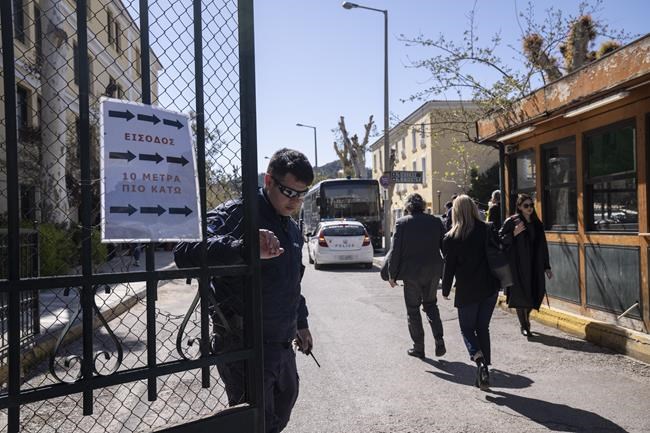 ATHENS, Greece (AP) — Two men accused of planning a Passover attack on a Jewish center in central Athens appeared in court Friday to answer to terrorism charges and were ordered to remain in pre-trial detention, authorities said.