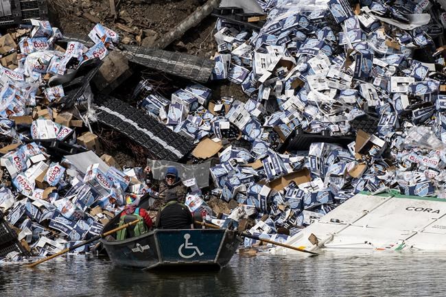 PARADISE, Mont. (AP) — Crews could face a difficult cleanup task after a 25-car train derailment spilled powdered clay and cases of beer beside a scenic western Montana river, leaving some cars off the tracks in a narrow, century-old tunnel with limited access, officials said.