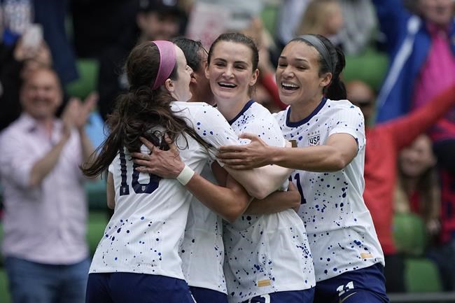 Among the players vying for a World Cup spot was Ertz, who hadn’t played for more than 600 days because of injuries and the birth of her son. Ertz came in as a substitute in the 66th minute and was handed the captain’s armband by defender Becky Sauerbrunn.