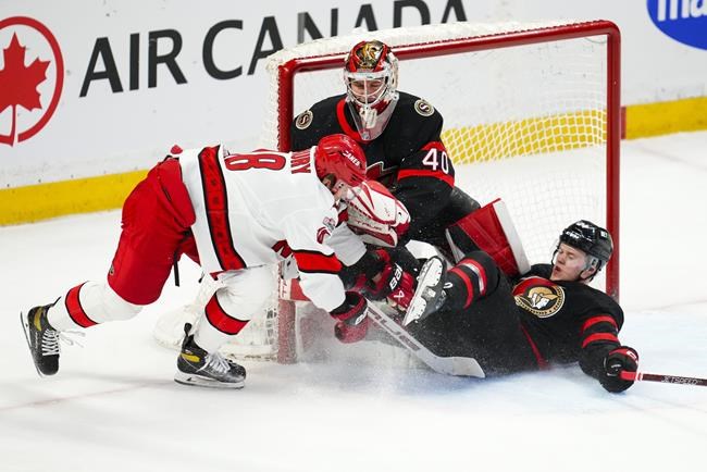Leading 2-0 the Senators had a goal called back early in the second when it was ruled offside and the Hurricanes cut the lead in half when Martin Necas dropped a pass back to Brett Pesce who beat Sogaard high.