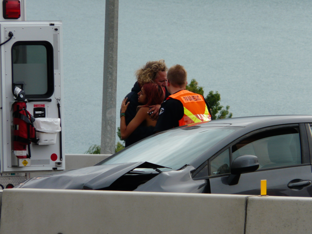 Her car bounced off a concrete meridian, travelled across the north bound lanes on Highway 97 before smashing in to the centre meridian separating north and south bound traffic on the route.