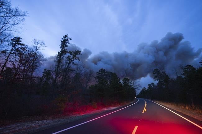 The blaze in Manchester, near Joint Base McGuire-Dix-Lakehurst, forced the evacuation of around 170 homes late Tuesday, with police and fire officials going door-to-door to ask people to take temporary shelter at a nearby high school.