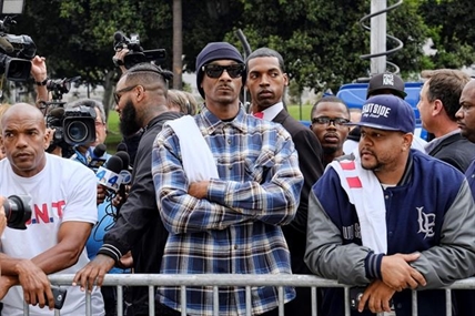 Beyonce called on her fans to contact their congressional representatives; T.I. marched with thousands to protest police brutality in Atlanta; and Snoop Dogg and The Game went to Los Angeles Police Department headquarters, where they addressed graduating cadets with 100 community members.