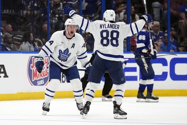 The Leafs opened the scoring at 3:24 of the first when Acciari scored before Tampa — which won the Stanley Cup in 2020 and 2021, and also made last spring’s final — responded 1:26 later when Cirelli fired past Samsonov.