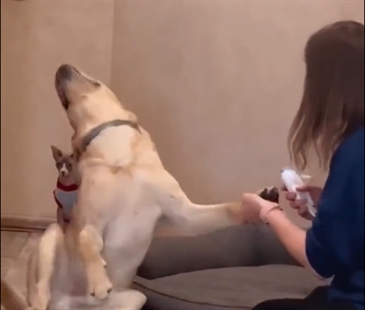 This clever fellow knows exactly what he's doing. Watch him 'faint' over and over again. That cat isn't impressed either.