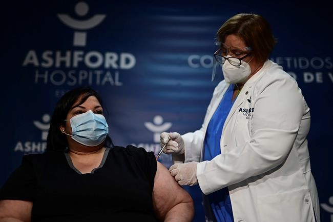 SAN JUAN, Puerto Rico – A respiratory therapist who treated the first two COVID-19 patients hospitalized in Puerto Rico became the first person in the U.S. territory to be vaccinated against the virus on Tuesday.