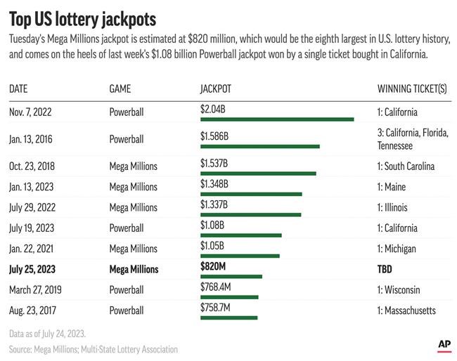The new $910 million prize is among the largest in U.S. lottery history and follows a $1.08 billion Powerball prize won by a player July 19 in Los Angeles. California lottery officials haven’t announced a winner for that jackpot, which was the sixth-largest in U.S. history.