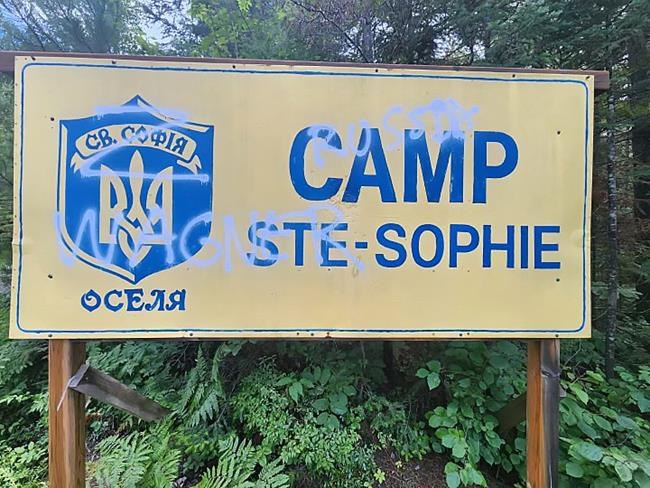 CHERTSEY, Que. – Officials who run a summer camp north of Montreal for Ukrainian children say one of its signs has been vandalized with pro-Russian graffiti.