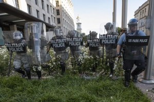 State TV showed a 500-member military construction brigade working in the dark Friday night to close a 90-meter-long (300-foot-long) breach in a river dike in Fuyu, a city in Jilin. They drove steel rods into the ground and piled up hundreds of sandbags to fill the gap.