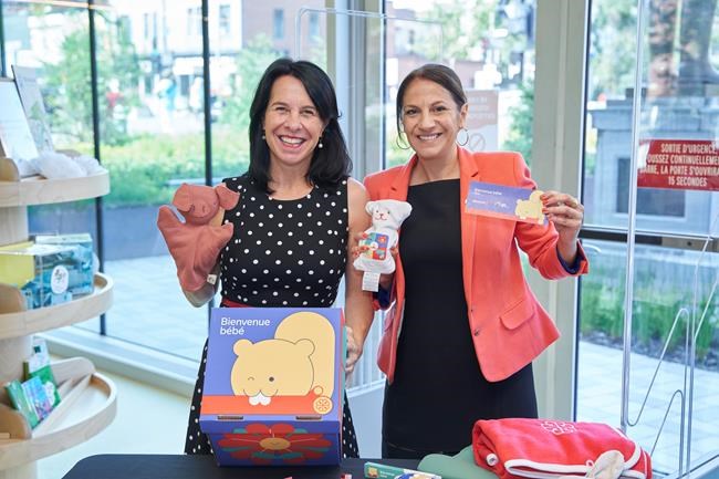 The colourful boxes will contain 12 items from local vendors with a total value of $200, including a blanket bearing the city of Montreal logo, a bath towel, a pair of pants, a picnic blanket, a pool diaper, a rattle, a silicone bib, a stuffed animal and a toothbrush.