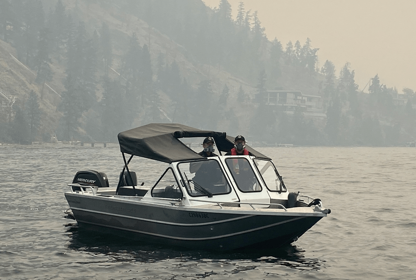 Conservation officers supporting firefighting efforts on the McDougall Creek Wildfire in and around West Kelowna seized a drone on Sunday while patrolling on Okanagan Lake.
