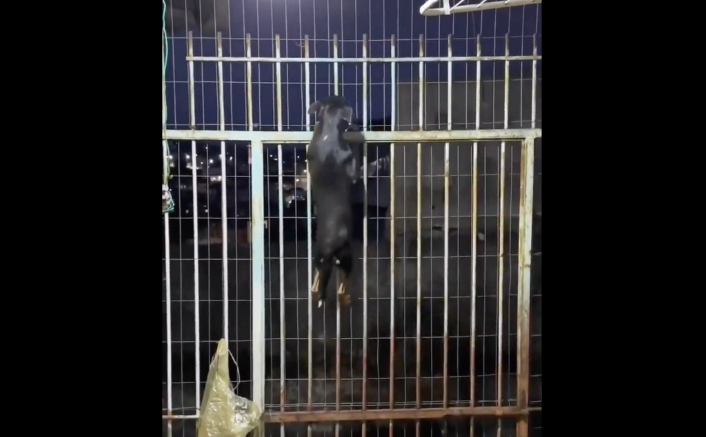 This little pup doesn't let iron bars stand in they way of his "prison break".