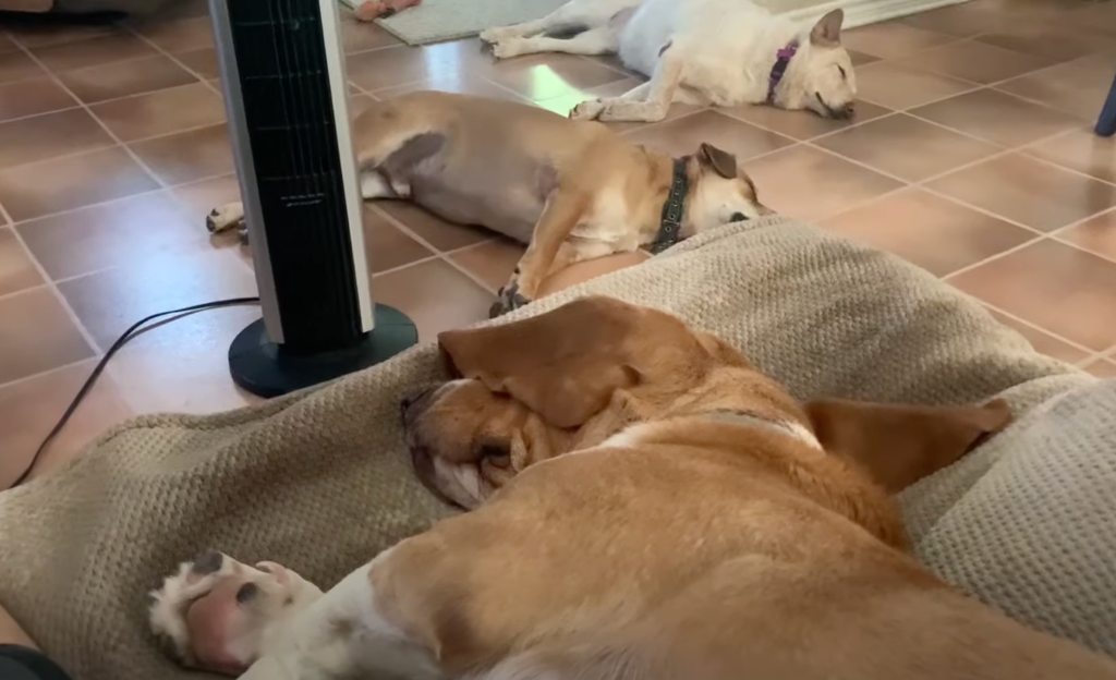 This trio of sleeping dogs need only to hear the word 'squirrel' to rouse them from their slumber.