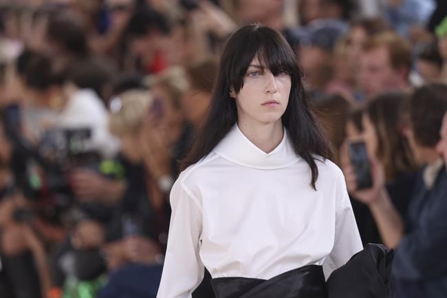 PARIS (AP) — Flashes of intrigue greeted guests at Loewe’s meticulously designed space for Paris Fashion Week. Bright, other-worldly lighting brightened a dove-gray runway where gold modernist sculptures by American artist Lynda Benglis were scattered as if dropped by a fashion divinity, hinting at the merging of fashion and art.