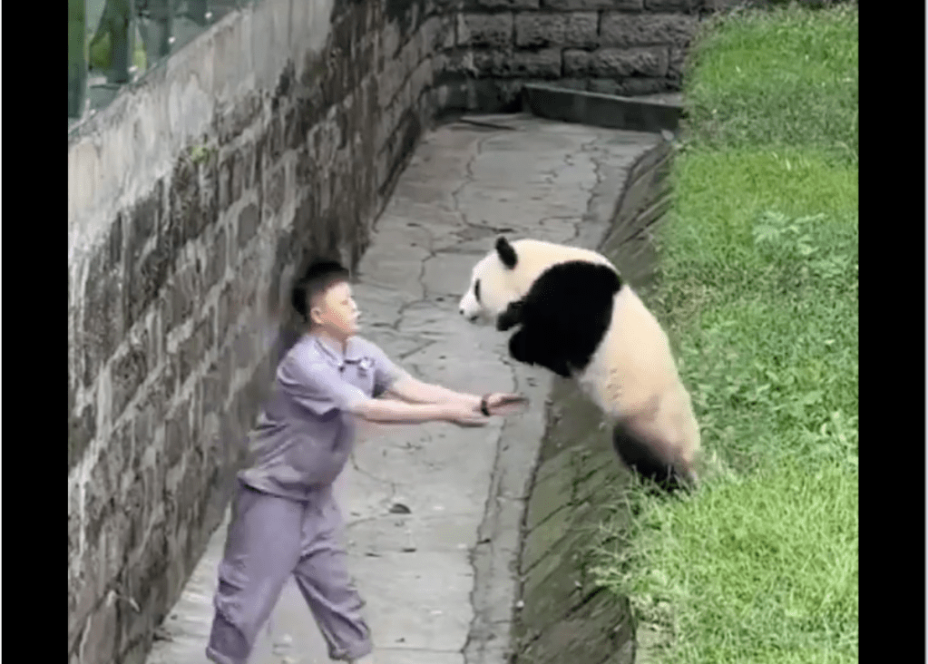 The look on the caretaker's face makes it seem like this trust exercise happens all too often.