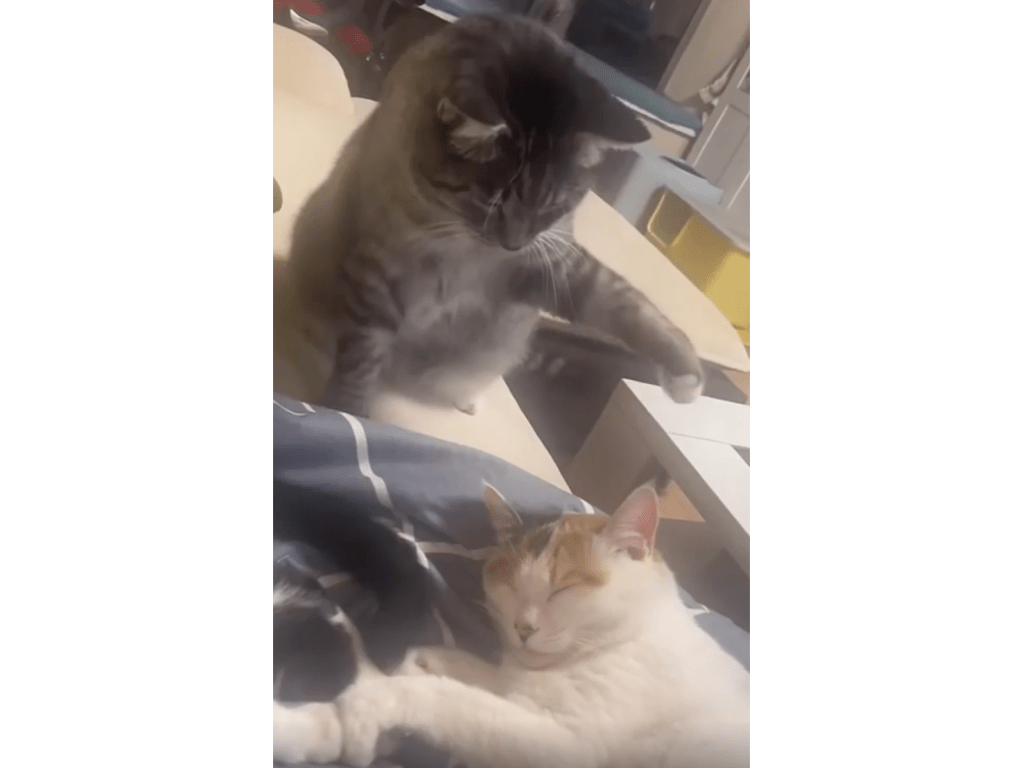 What started as an attempt to record a heart-warming video of two cats went sideways quickly.