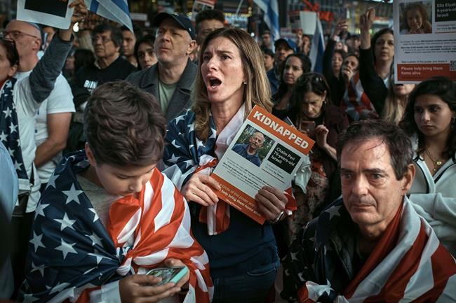 At a pro-Israel rally on Thursday night, where hundreds packed into New York City’s Times Square to demand the release of the hostages, Senate Majority Leader Chuck Schumer of New York led the crowd in the chant “bring them home.” Photos of the hostages and the Israeli flag shined brightly from towering billboards.