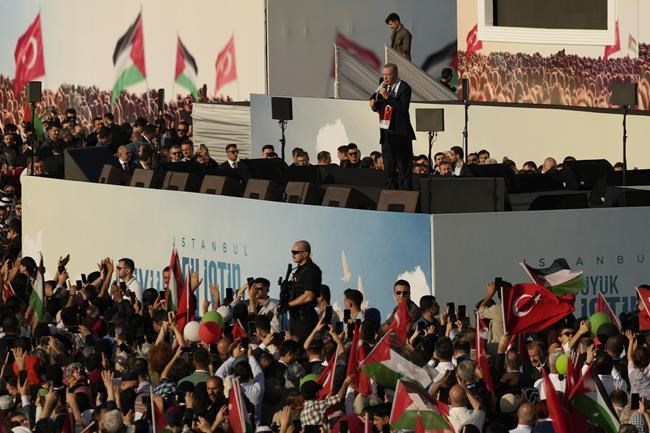 In his remarks at the Istanbul protest, Erdogan also held Western countries responsible for the more than 7,700 people the Hamas-led Health Ministry in Gaza said have been killed in the last three weeks.