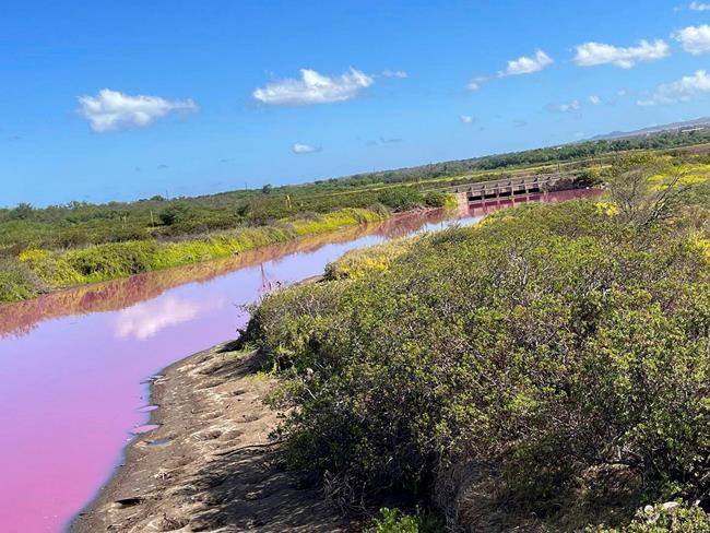 Wildlife refuge pond in Hawaii mysteriously turns bright pink. Drought may be to blame