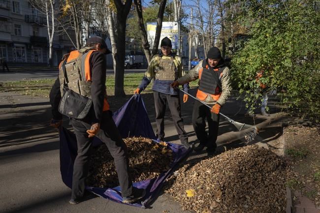 Clearing leaves is an unusual task for municipal workers in Kherson, Krupenko said. Usually they are dispatched to remove rubble from explosion sites.