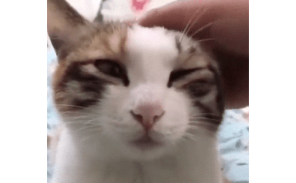 This purring kitty was enjoying some attention from its human when suddenly the purring stopped.