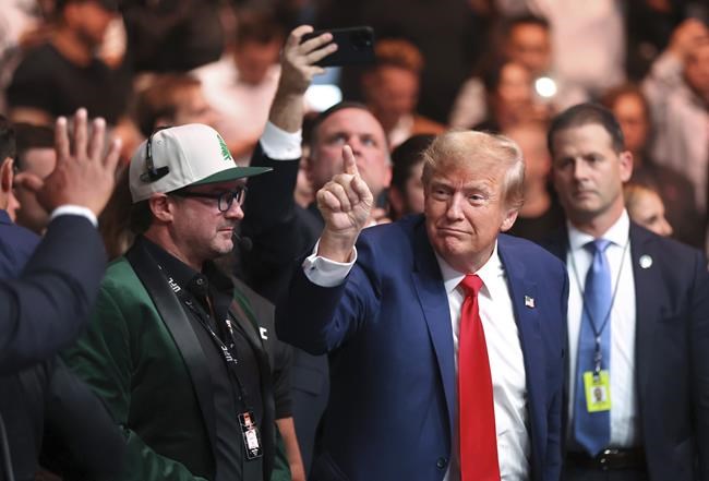 Trump sat ringside, with UFC CEO Dana White, musician Kid Rock and UFC chief business officer Hunter Campbell.