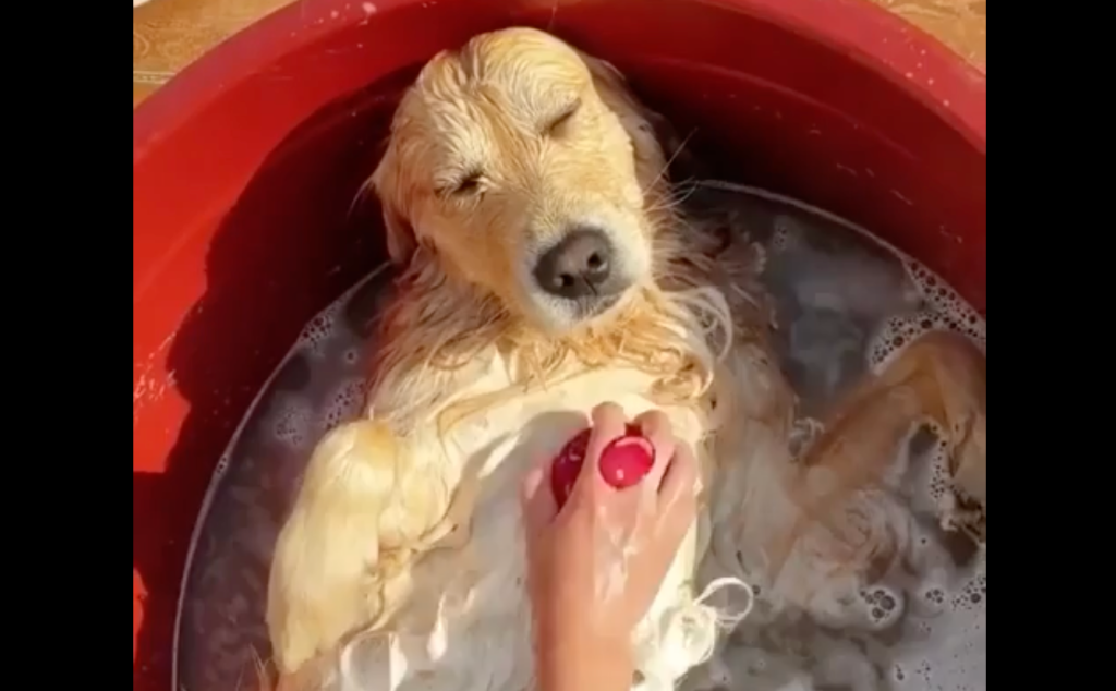 Apparently not all dogs hate the bath. This doggo definitely looks like he's in his happy place.