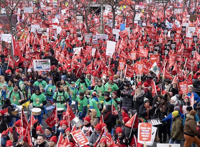 MONTREAL – An alliance of Quebec unions representing 420,000 public sector workers said Thursday it reached a deal on salaries with the provincial government, a crucial step toward ending the labour conflict that has shut schools and delayed surgeries since November.