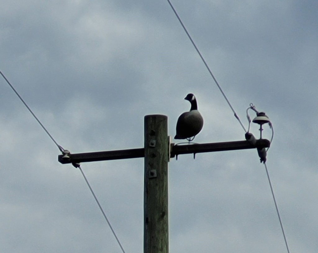 The Canada goose decoys can be found on power lines throughout the province as part of an attempt by BC Hydro to deter osprey from nesting on power line poles which can cause power outages and fires.