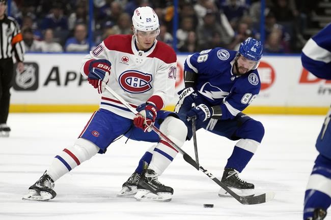 Lightning defenceman Erik Cernak left after taking a hard check behind the Tampa Bay net from Anderson nine seconds after Caufield’s goal. Anderson was assessed a charging penalty after a video review.