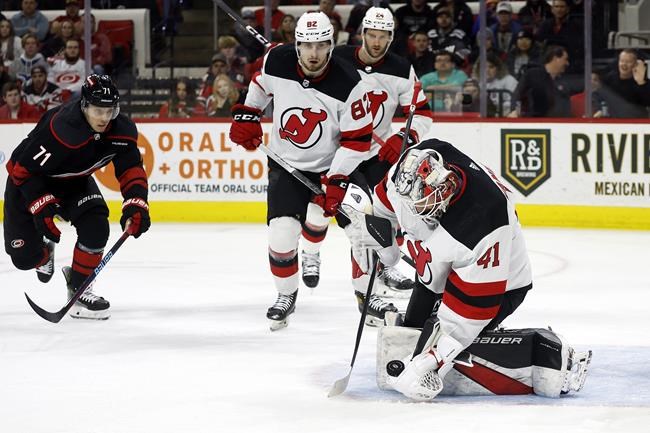 Justin Dowling and Jesper Bratt scored New Jersey’s goals in the third period. Dowling was making his Devils debut in his first NHL game this season. Nico Daws was pulled after Carolina’s third goal.