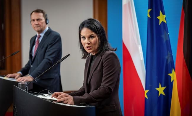 Foreign Minister Radek Sikorski spoke at a joint news conference with German Foreign Minister Annalena Baerbock in Berlin before their talks on improving bilateral relations that were strained under Poland’s previous government.
