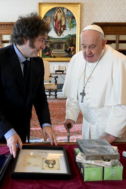 The Vatican made no mention of a possible visit in a statement released after the Francis-Milei meeting. The statement, which focused only on Milei’s subsequent encounter with the Vatican secretary of state, said those talks covered the government’s “program to counter the economic crisis” as well as unspecified international conflicts.