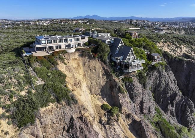 DANA POINT, Calif. (AP) — A massive landslide on a coastal bluff has left a Southern California mansion on the edge of a cliff, but authorities have determined that the ocean-view home and neighboring residences are not in immediate danger.