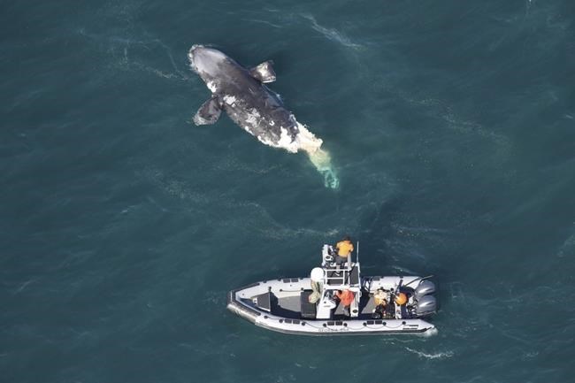 The discovery came after another young female right whale was reported dead Jan. 28 off Martha’s Vineyard, Massachusetts. A necropsy found rope embedded in its tail. NOAA said it was consistent with a type of rope used in commercial fishing gear.