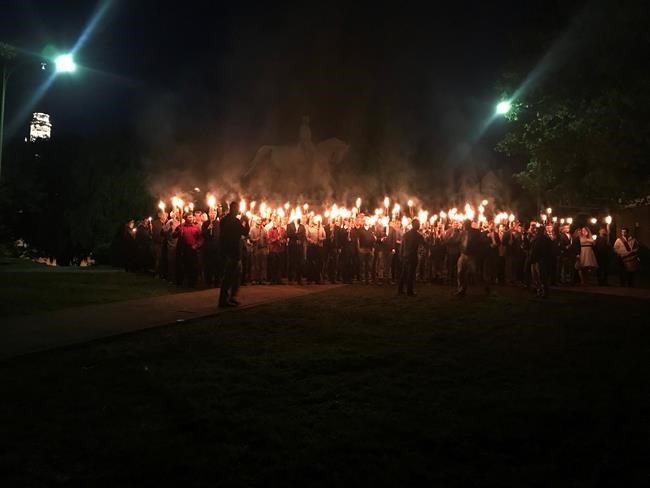 CHARLOTTESVILLE, Va. – A group that included a well-known white nationalist carried torches and chanted “you will not replace us” at a weekend protest in Virginia over plans to remove a monument of a Confederate general.