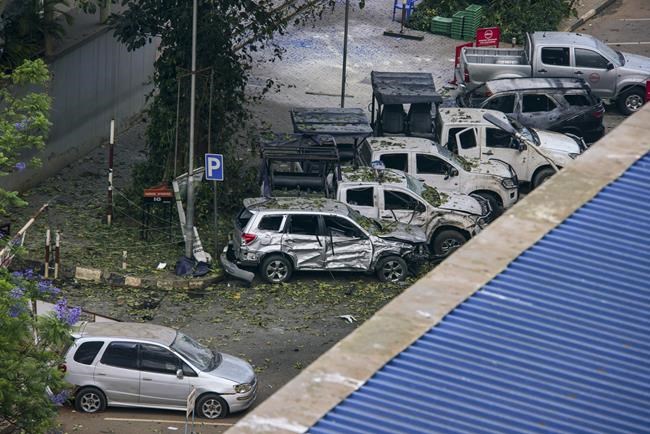 One blast was near a police station and the other on a street near the parliamentary building, according to police and witnesses. The explosion near parliament appeared to hit closer to a building housing an insurance company and the subsequent fire engulfed cars parked outside. Body parts were seen scattered in the street, and later some lawmakers were seen evacuating the parliamentary building nearby.