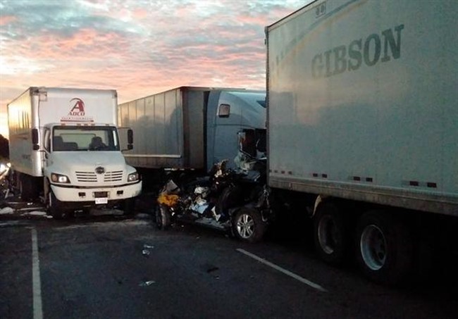 A man, a woman and a boy died in the pileup, Schmidt said, adding that as many as 20 vehicles, including four tractor-trailer trucks, were involved in the collision in the westbound lanes of the highway.