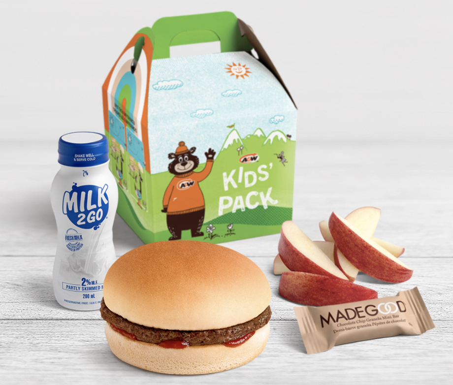 Every Kids’ Pack comes with the option of a side of apple slices, a granola bar and 2% milk.