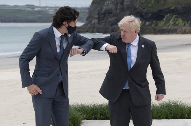 CARBIS BAY, CORNWALL, ENGLAND – Prime Minister Justin Trudeau will wait until an international summit with his democratic peers concludes before providing any details on how Canada will make up to 100 million vaccine doses available to countries not as flush with protection against COVID-19.