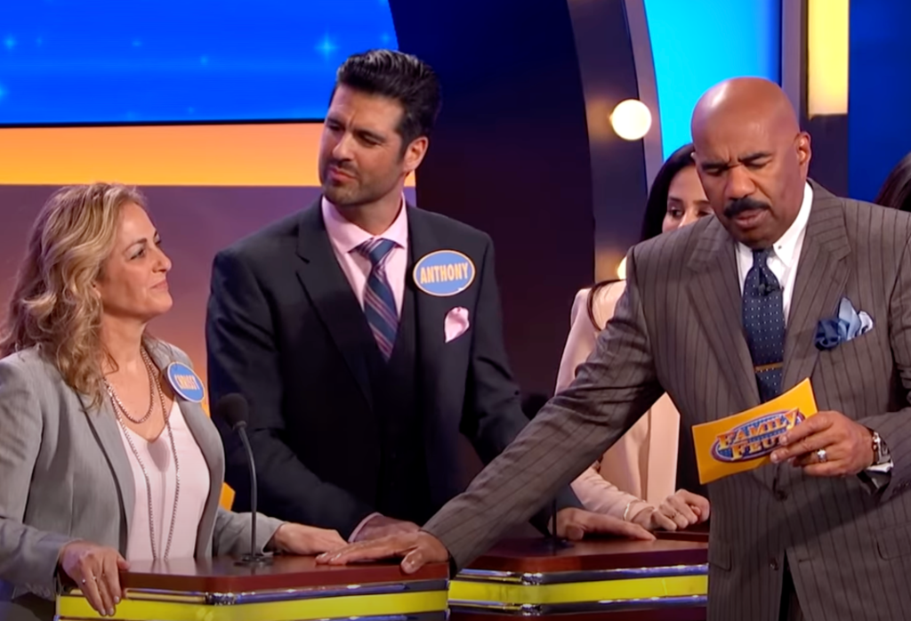 Steve Harvey asked: "Name something that people in hell have to stand in all day long."