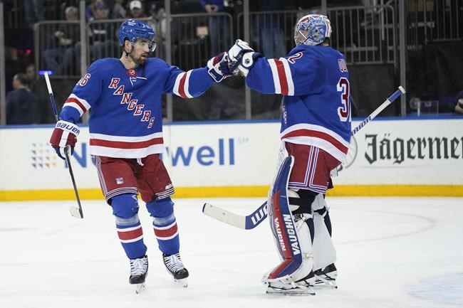NEW YORK (AP) — Mika Zibanejad and Erik Gustafsson scored in the second period as the New York Rangers beat the New Jersey Devils 3-1 on Monday night.