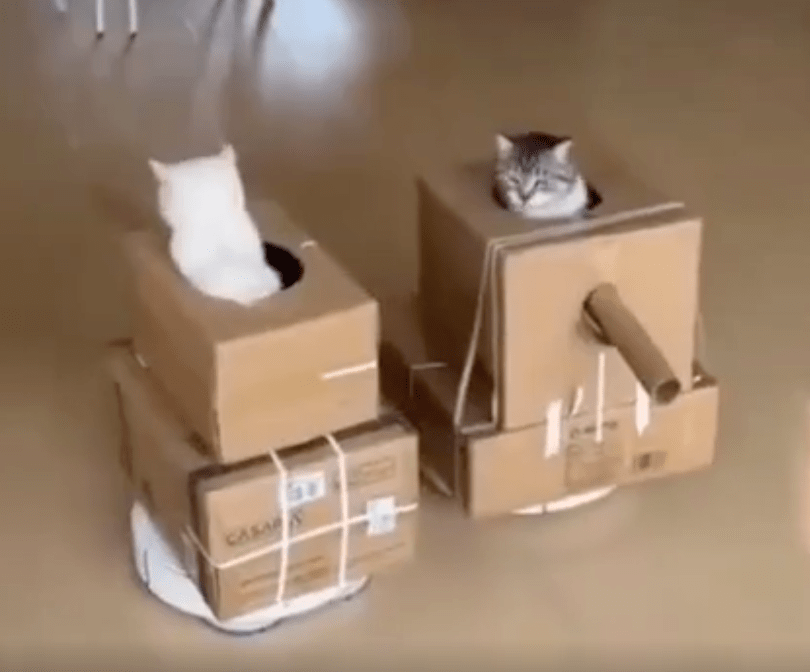 Once they were friends, but they have mounted their Roombas and become enemies.