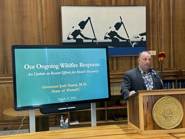 HONOLULU (AP) — Hawaii Gov. Josh Green said Wednesday some 3,000 people displaced by Lahaina’s wildfires are still living in hotels more than seven months after the August blaze but that up to 30 people are moving to longer-term housing each day.