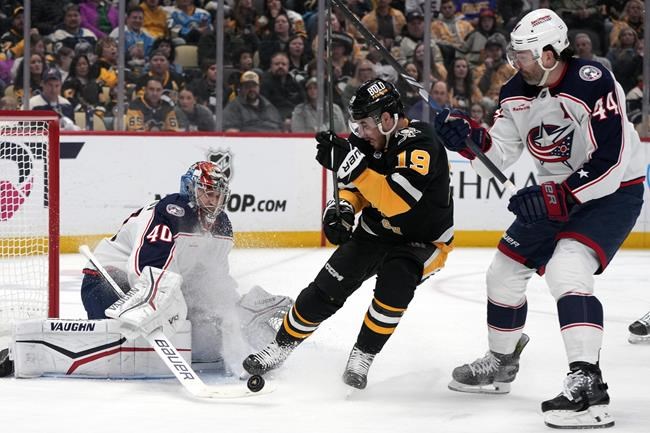 PITTSBURGH (AP) — Evgeni Malkin scored twice to reach the 20-goal milestone for the 15th time and Pittsburgh extended their mastery over Columbus with a 3-2 win on Thursday night.